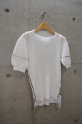 無縫製のリブニット。後身頃にゆとりが出るようなシルエットで着心地も抜群です。さりげなく入ってくる配色も他ではないテクニックです。